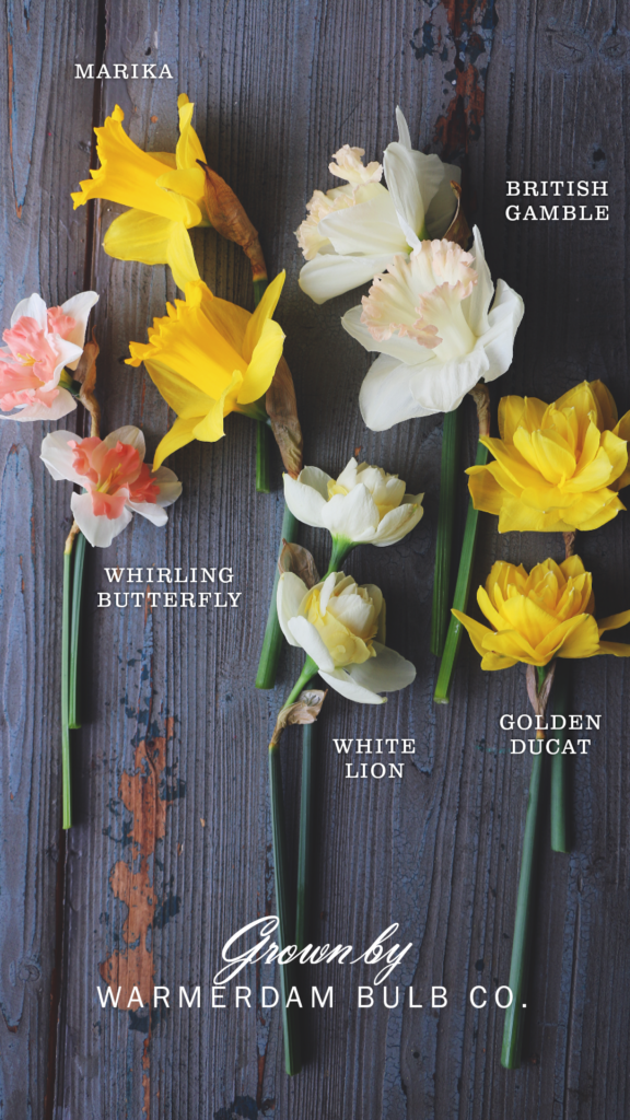 Here are the 5 Varieties of Daffodils grown by Warmerdam Bulb Co that we have at our market right now (and not for too much longer!):