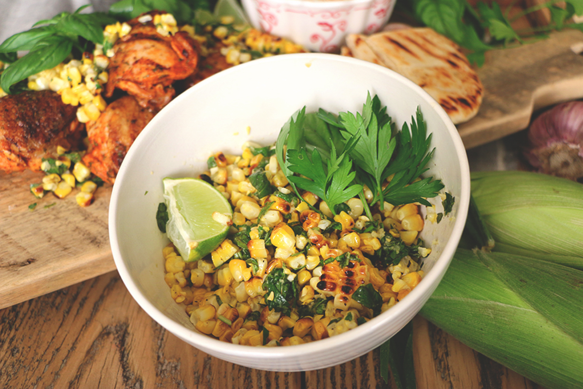 Meanwhile, add corn cobs to grill; grill, turning frequently, until lightly charred, 8-10 minutes. Let cool enough to handle. If serving with flatbread, lightly oil both sides and grill for approx 30 seconds on each side, or until desired doneness.