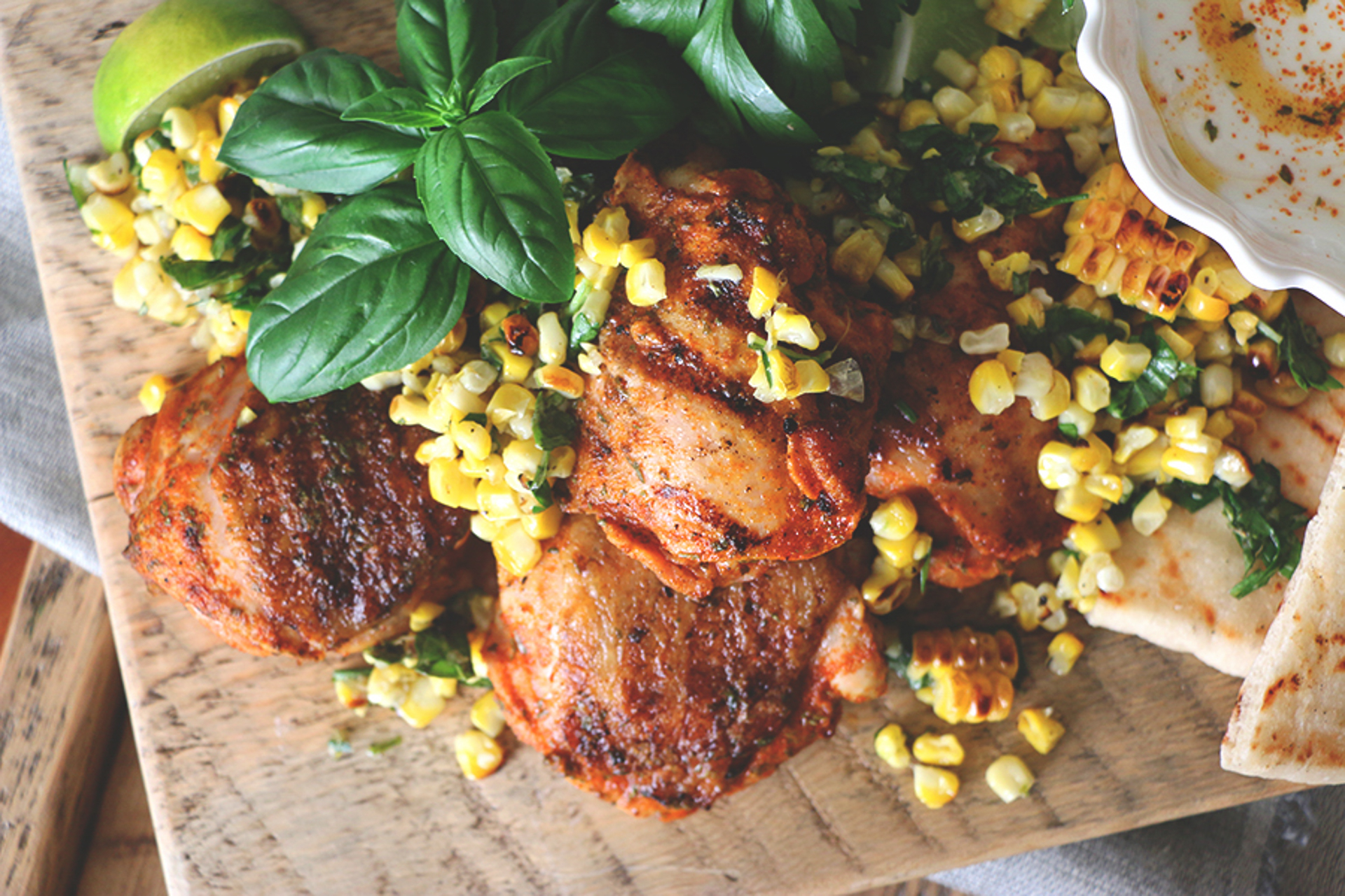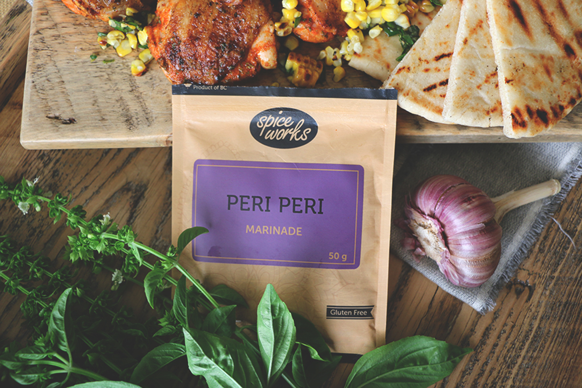 Since many ethnic dishes frequently call for a long list of exotic spices, Nina has done the work for you, and often all you need to add is one or two common pantry ingredients to create a delicious dish. The Peri-Peri marinade featured in this recipe is mildly spicy, and the fresh flavors of the herbs, lime, and smoky sweet corn make for a dinner that will be sure to become one of your family’s favorite meals!