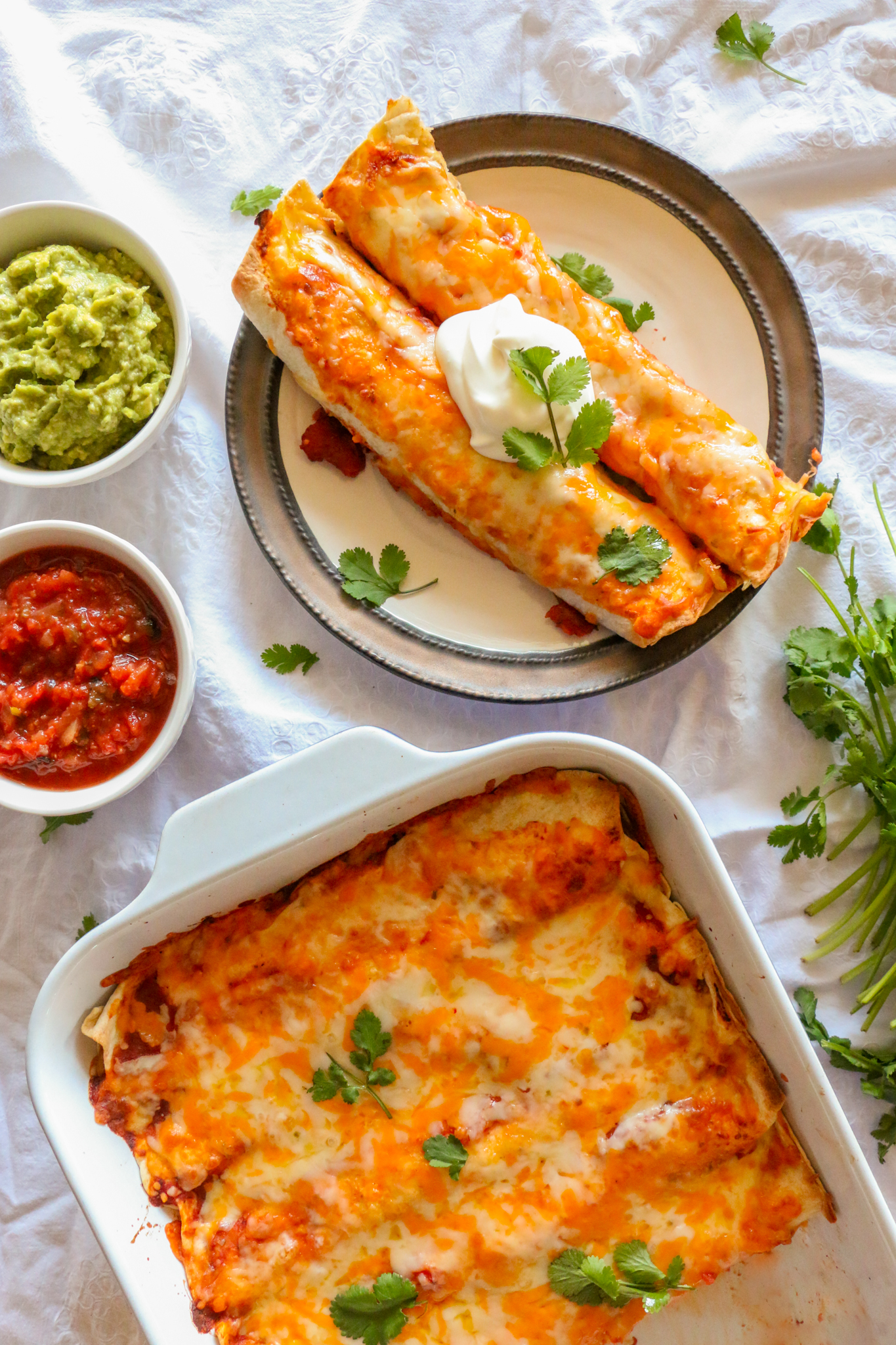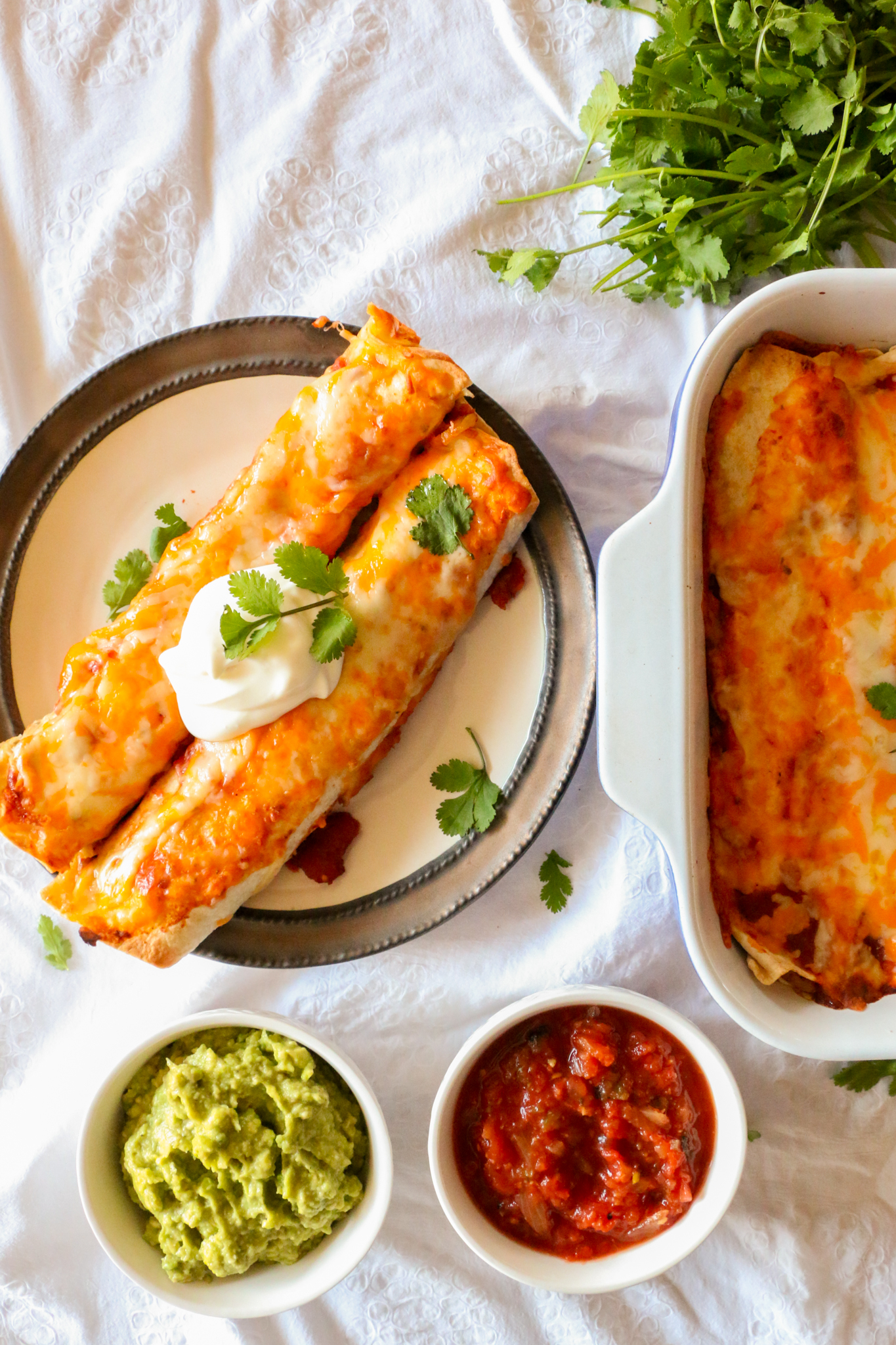 Serve with additional sour cream, salsa and guacamole.