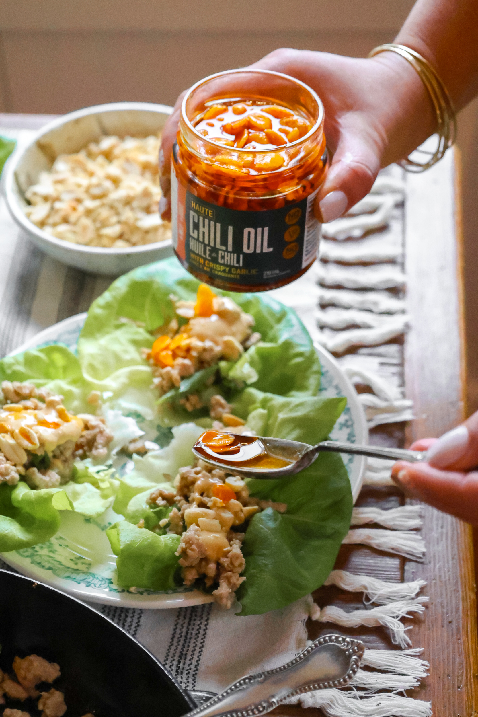Haute Foods Chili Oil with Crispy Garlic is made in Richmond, BC without preservatives. The combo of spicy chili and crispy garlic, elevate your dishes with flavour and texture! It is perfect for drizzling on your lettuce wraps for a pop of color and heat.