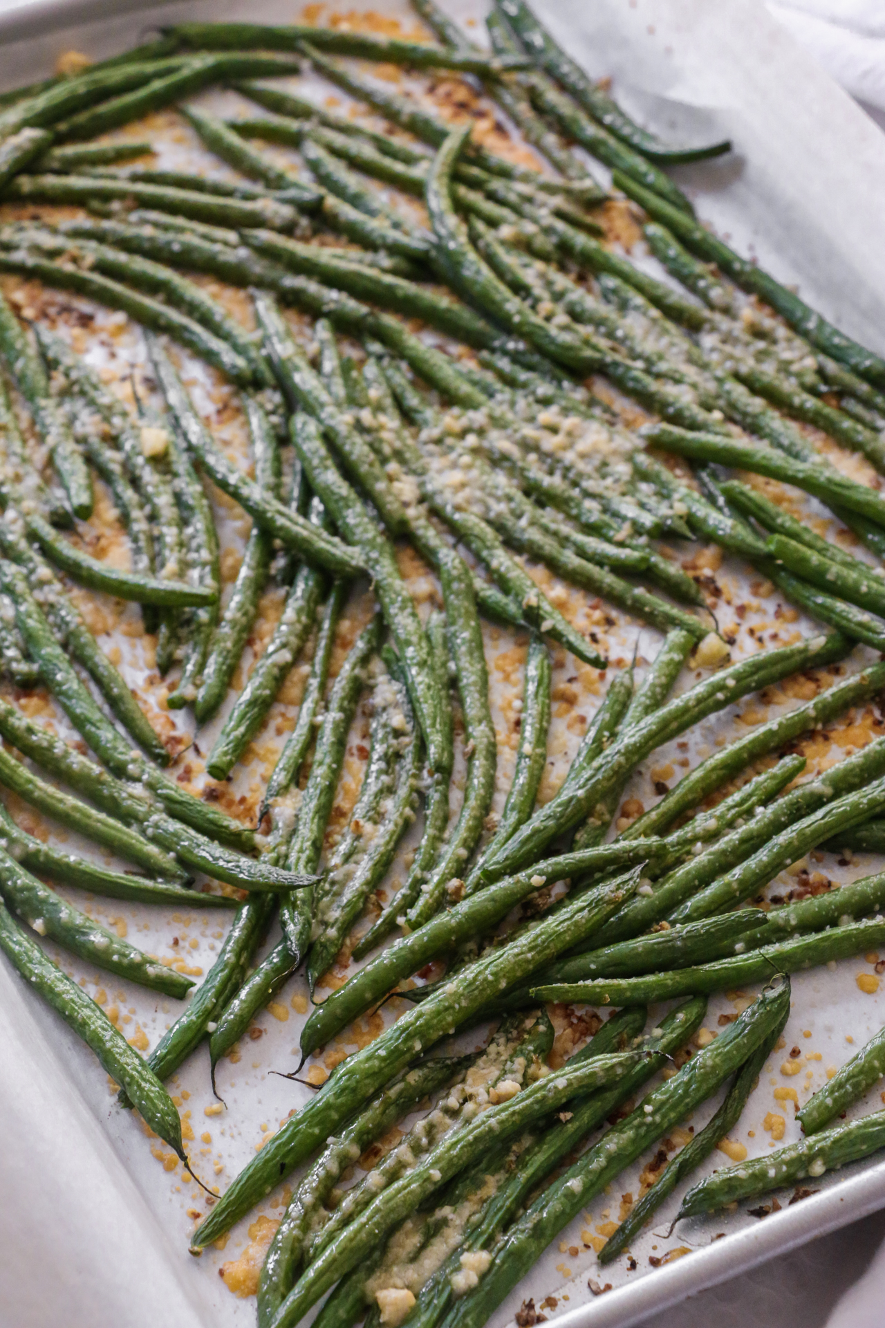 Lay green beans on the baking sheet in a single layer, which ensures they get crispy rather than steam.