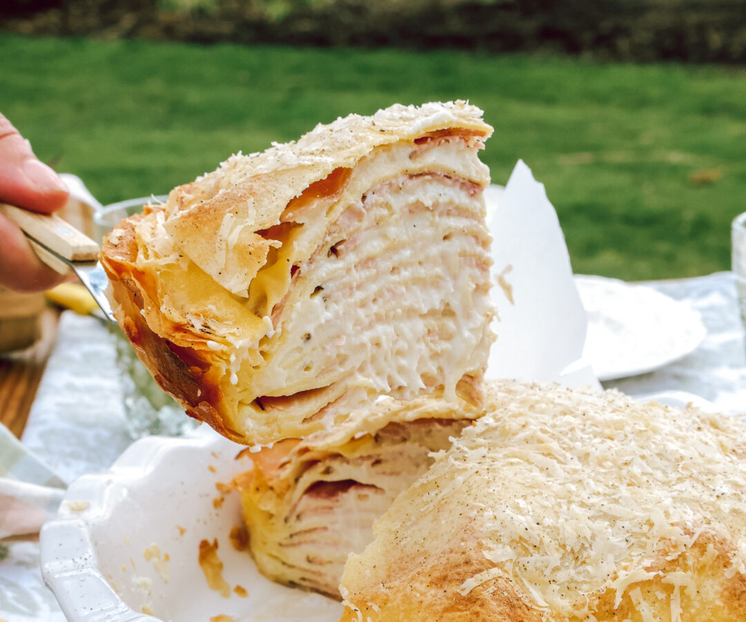 This casserole is extra decadent and is sure to impress your brunch guests. Not to mention, it’s hard not to ask for seconds! Thin crepes are layered with ham, cheese, bechamel sauce, and butter.