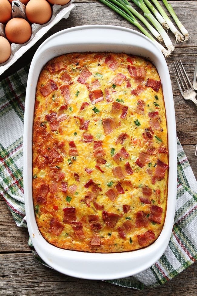 Bacon Potato, and Egg Casserole – this easy breakfast casserole is packed with bacon, potatoes, and cheese! It can be prepared ahead of time and is a real crowd pleaser!