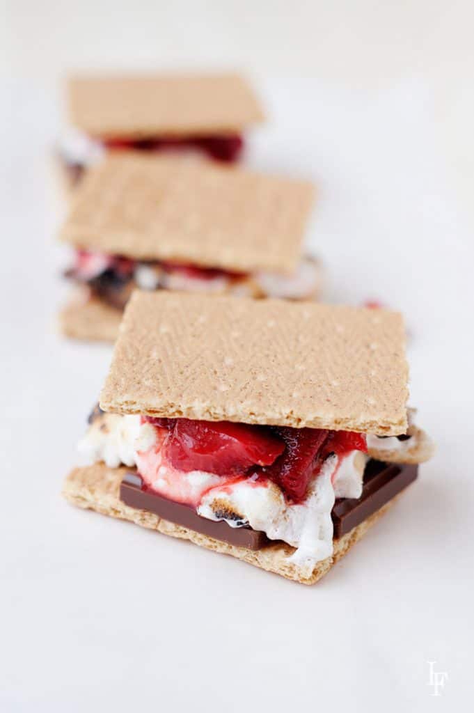 Can you imagine anything better than roasted strawberries to upgrade the classic s’more? Chocolate, gooey marshmallow, and juicy vanilla-roasted strawberries all sandwiched inside two crispy graham crackers… seriously delicious.