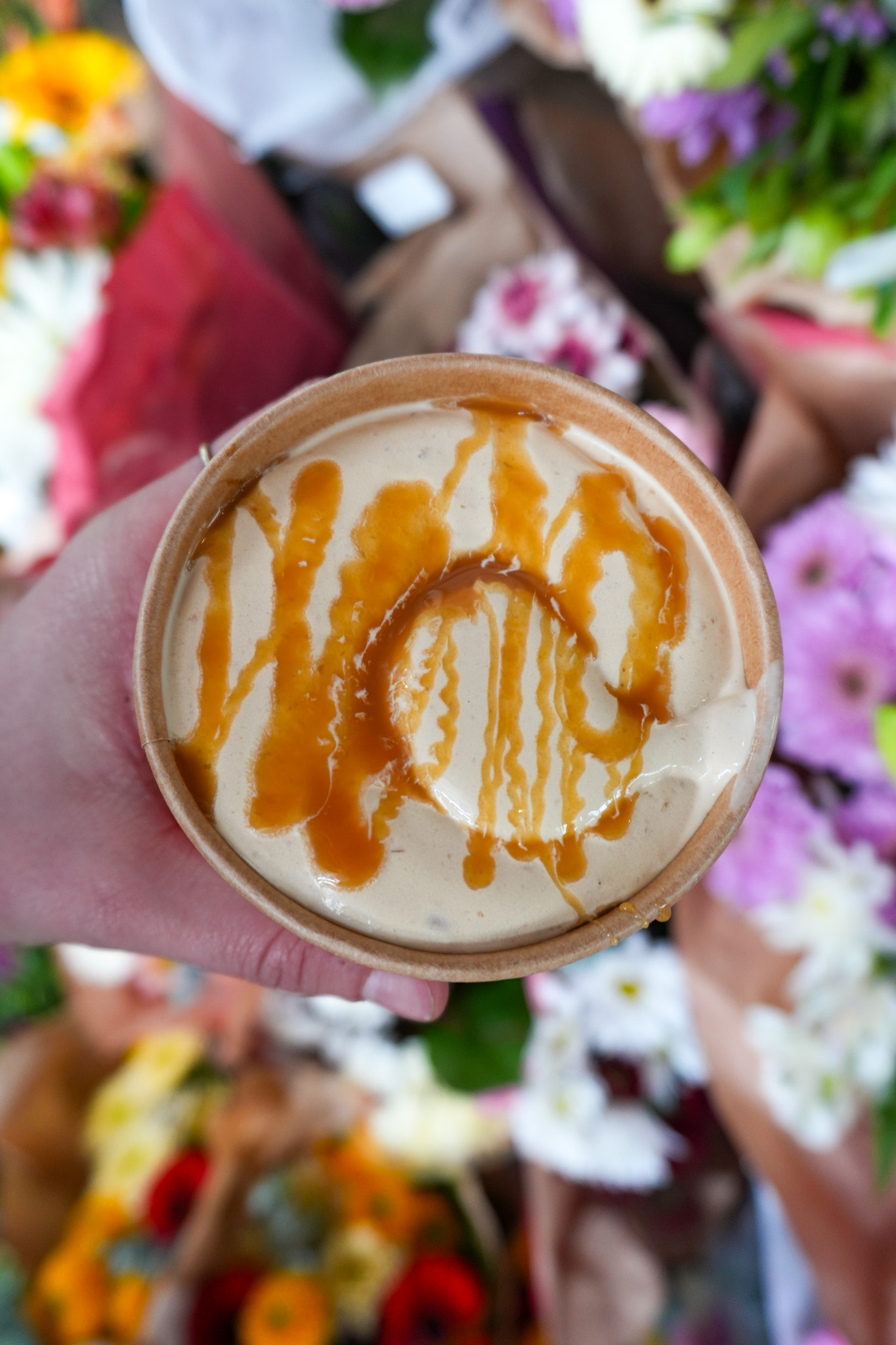 Caramel Macchiato Ice Cream: Get ready for our March feature Ice Cream… Caramel Macchiato! Coffee lovers, this one’s for you. Made with Birchwood Dairy vanilla ice cream, frozen coffee, and caramel drizzle. This one is so addicting. Available in half pints for all of March.
