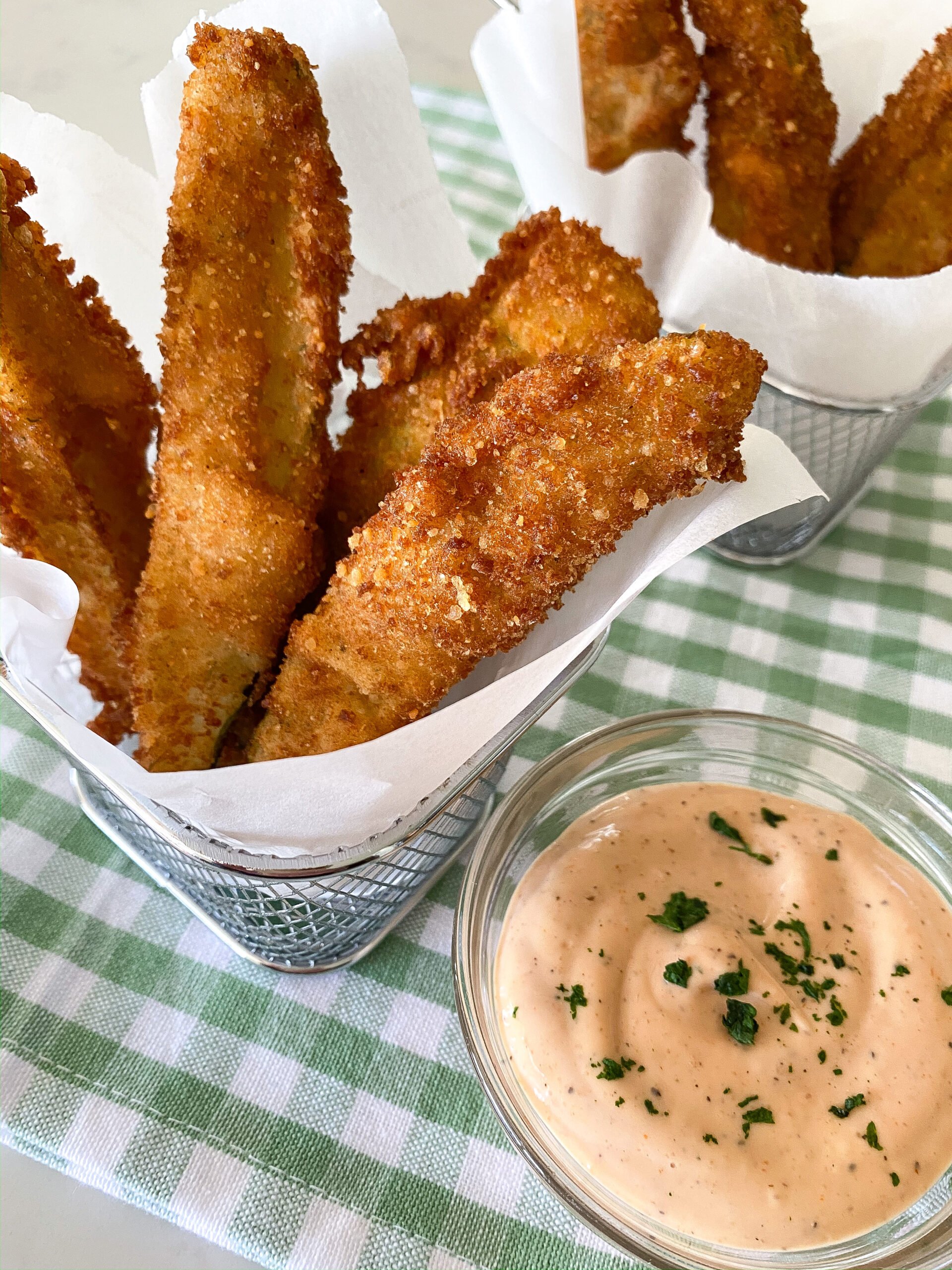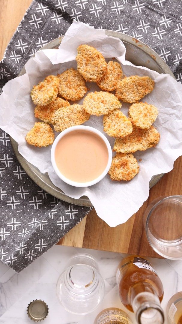 Plain ol’ chips can’t come close to the deliciousness of these panko-coated pickle chips. Try crisping them up in your air fryer!