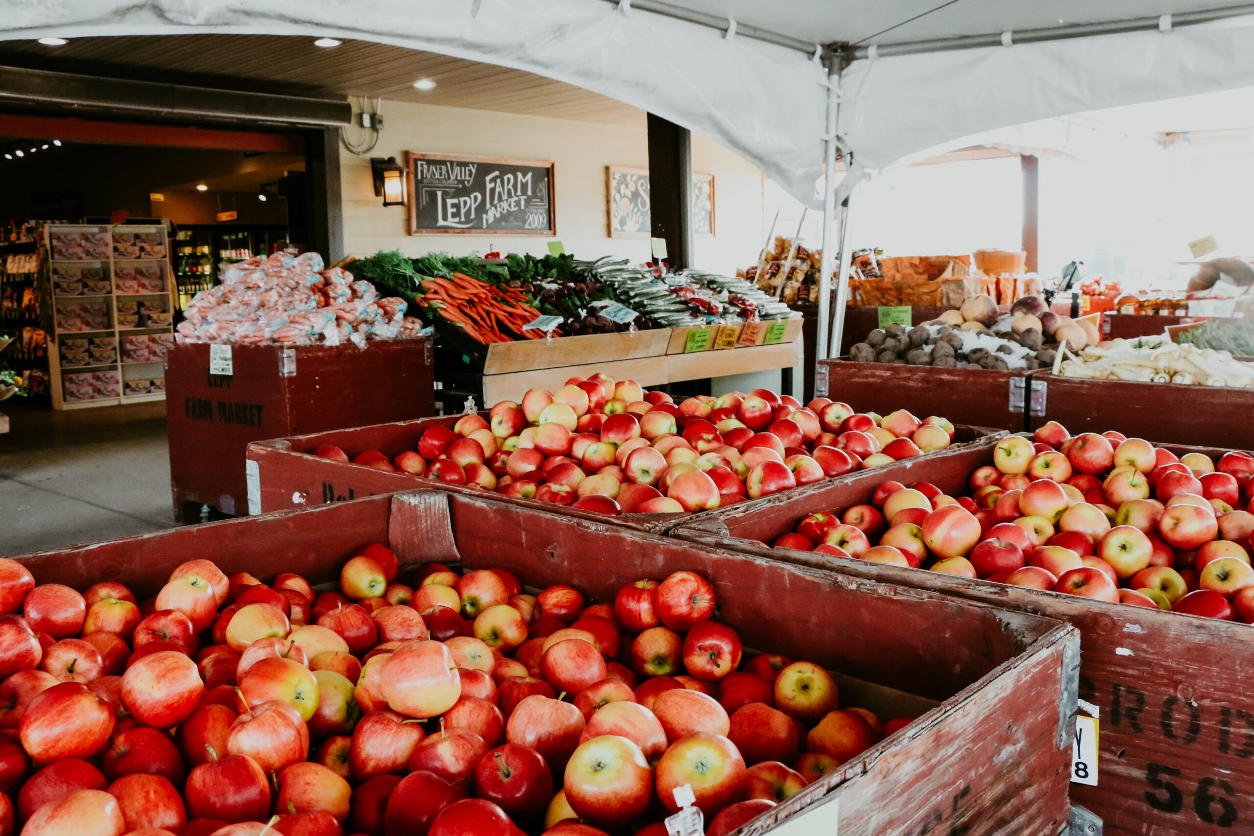 Located on the edge of Lepp Farms on the corner of Highway 11 & Clayburn Rd, our family-run farm market is open year-round. In the winter you’ll find our own farmed meats, holiday turkeys, and plenty of locally sourced & gourmet pantry items. During the summer months our produce department more than doubles as we source from farms all over the Fraser Valley & Okanagan Valley, including our own farms & orchards.