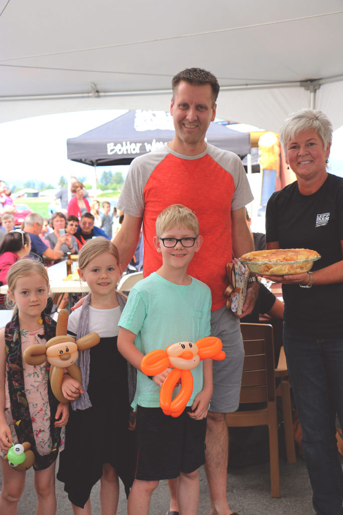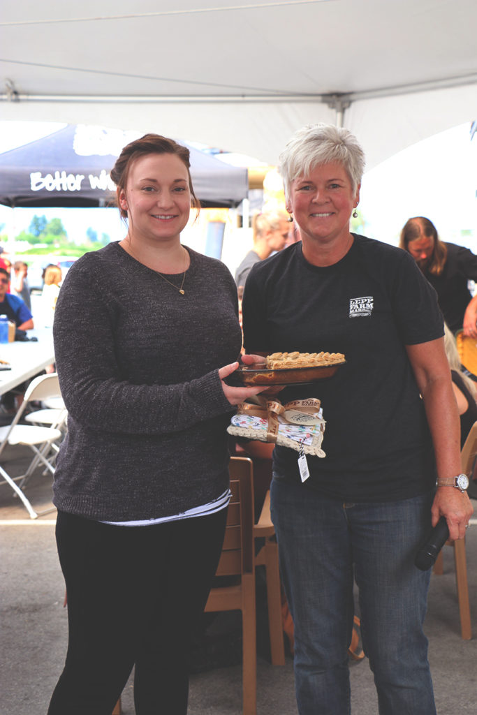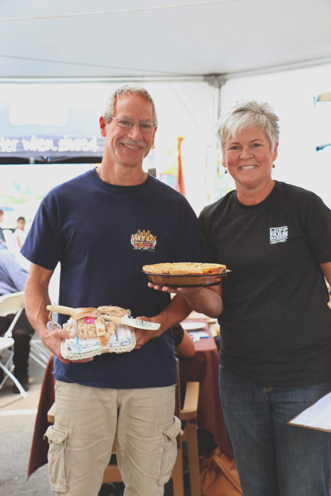 The Fraser Valley sees very little rain during the summer, but if you’re ever in need of a cloudy day with a little drizzle just let us know and we’ll host an event. It works every time to bring the rain on! Despite the forecast, bakers gathered at the market on Sunday with their pies in tow, ready to impress our panel of local judges. Among the pie connoisseurs this year were local cafe & bakery owner, Kristina, co-owner of Oldhand Coffee, along with her new business partner Spencer who will be the head Chef at Little Brother Brunch, opening up in downtown Abbotsford. Next to them sat our very own Market Chef Nick, a red seal chef and two time winner of Taste of Abby’s Chef’s competition, and Jason Lepp – the head butcher here at the market.