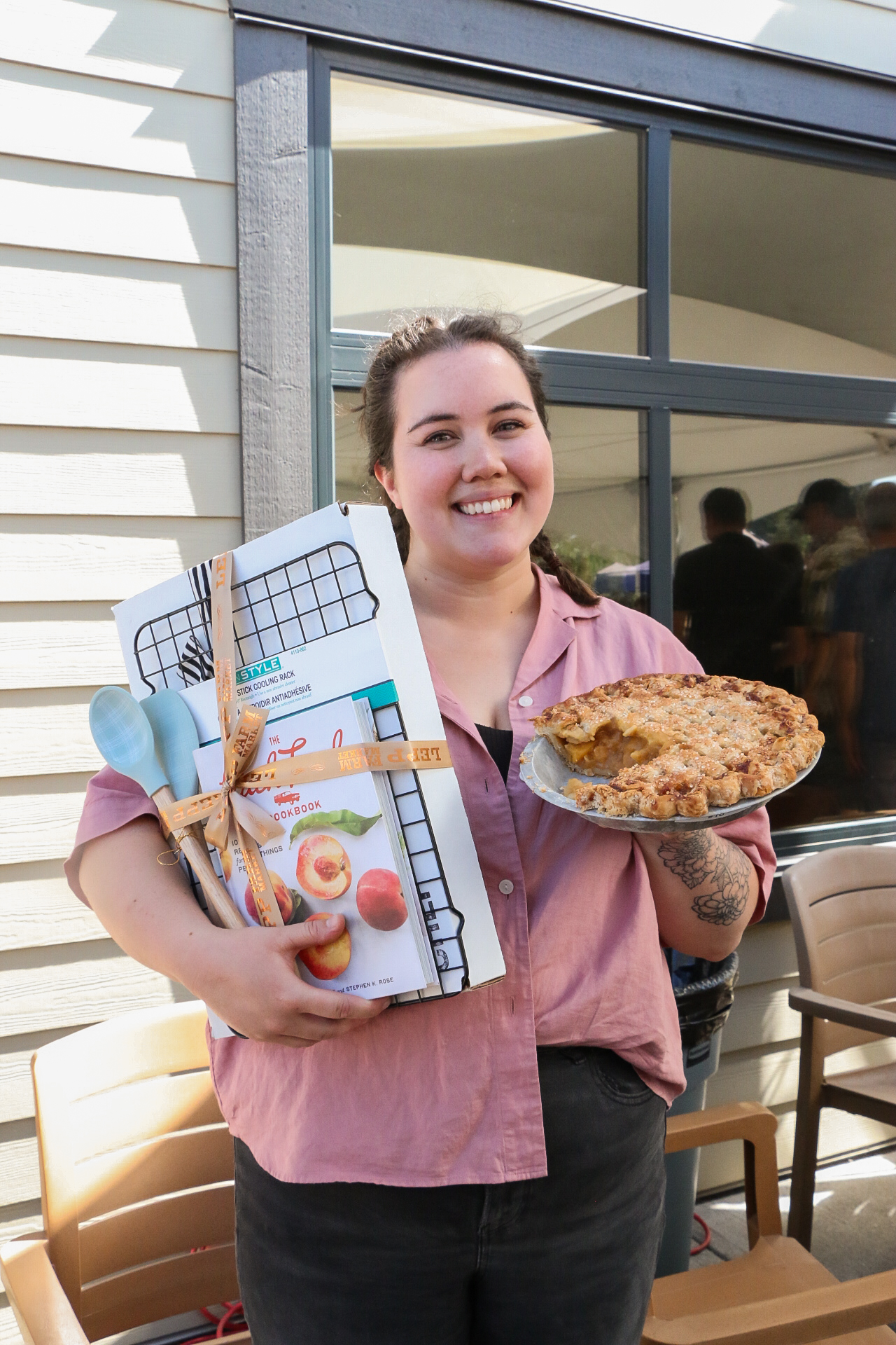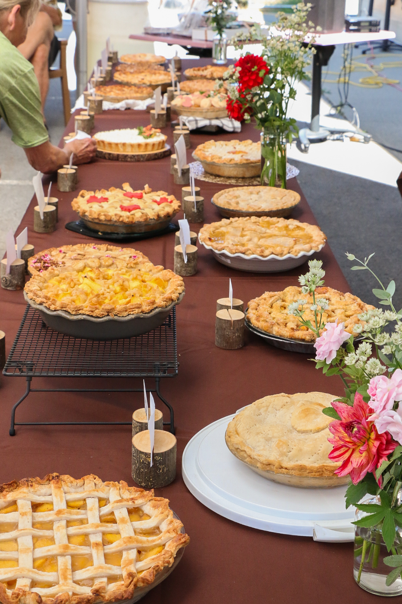 Last weekend was our 7th Annual Peach Pie Compeition! 17 Bakers attended the event, each one equipped with their own unique version of peach pie and ready to impress a panel of local judges. Among those judges was Waltraud Neufeld, owner of Yes Chef in Downtown Abbotsford, Ross Siemens, owner of Hub Motor Service and currently running for mayor, and our very own Charlotte Lepp, owner and chief recipe taster of Lepp Farm Market.
