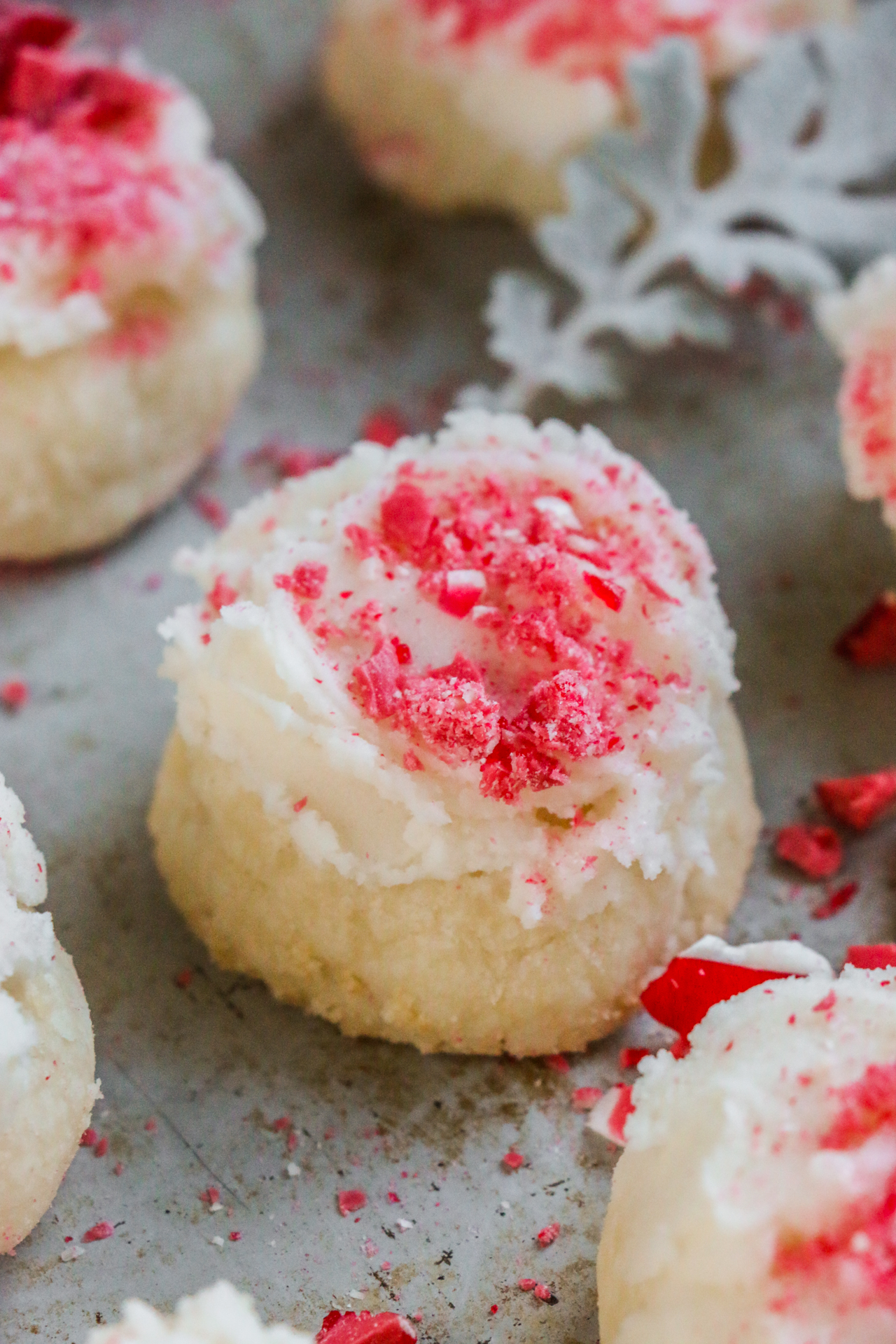 In a mixing bowl whisk together flour, cornstarch and salt, set aside. Using a stand or hand mixer, cream together butter and powdered sugar until combined. Mix in peppermint extract then, with the mixer set on low, slowly add in flour mixture and mix just until combined.