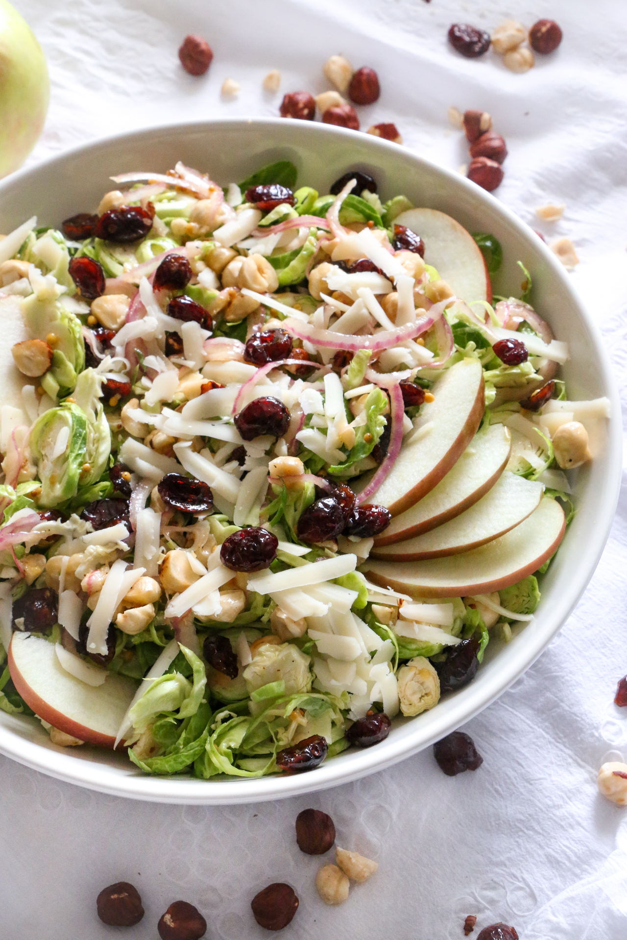 For the vinaigrette, combine all the ingredients in a jar with a tight-fighting lid. Shake the dressing well until emulsified. Pour over the Brussels sprout mixture and toss well to coat. Chill for at least 30 minutes.