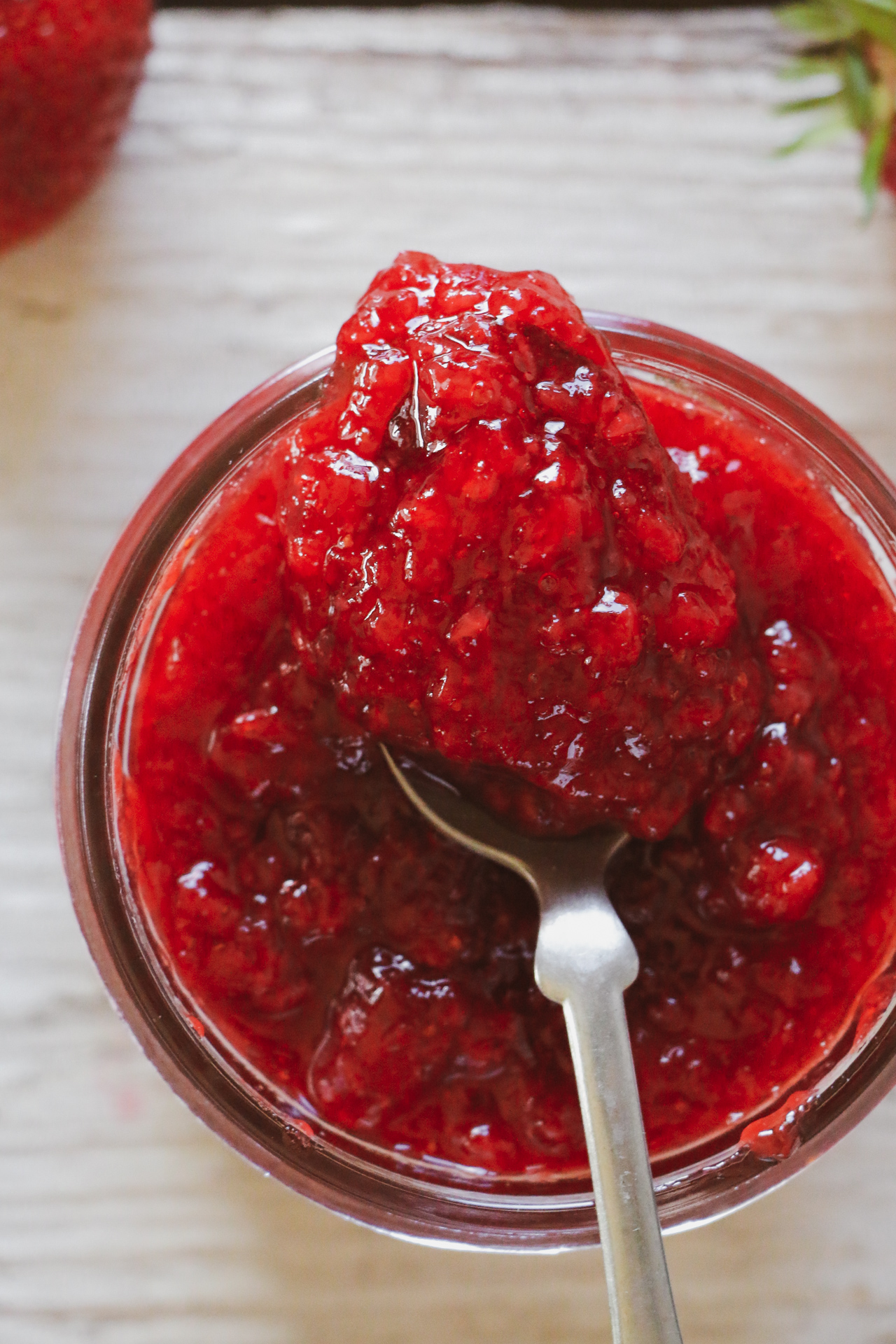 Strawberry jam is notorious for “fruit float.” This happens after processing before it fully sets when the strawberry pieces tend to float to the top of the jar. It’s remedied by simply stirring it together when you open the jar, but here’s my trick. It’s not recommended by the canning experts, as it could potentially lead to the seal on the jar “unsealing,” so don’t quote me on this. After processing and the jam has cooled for about 45 minutes, turn the jars upside down to force the fruit pieces to redistribute through the jar. Set a timer for 30-45 minutes and turn the jars right side up. By now, the pieces should have been redistributed through the jar. As I said, fruit float doesn’t affect taste or shelf-life; it’s purely aesthetic.
