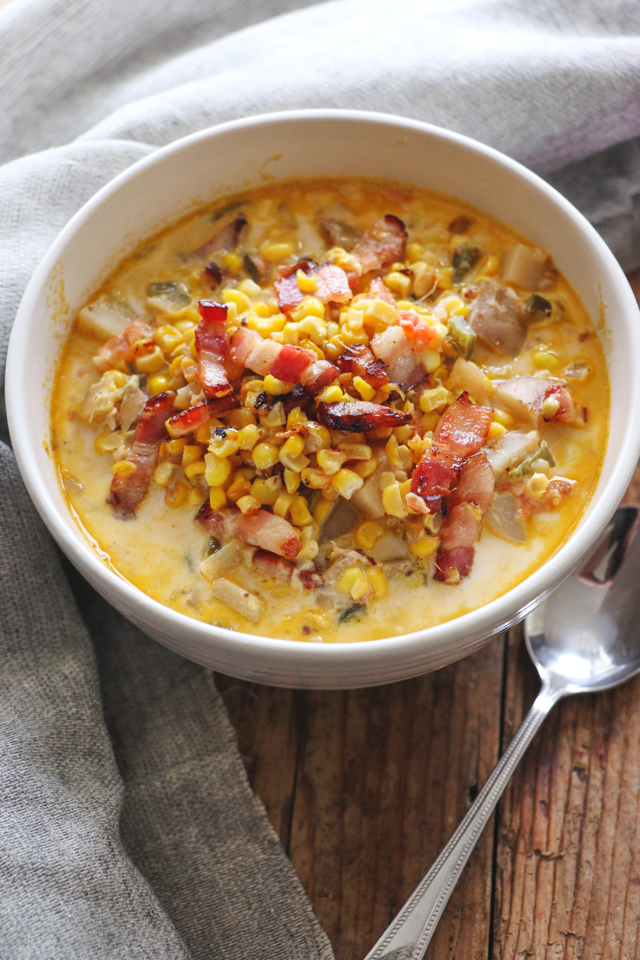 1 medium poblano pepper, finely chopped. I roasted my poblano on the grill ahead of time, and it gave the chowder a wonderful smoky kick.