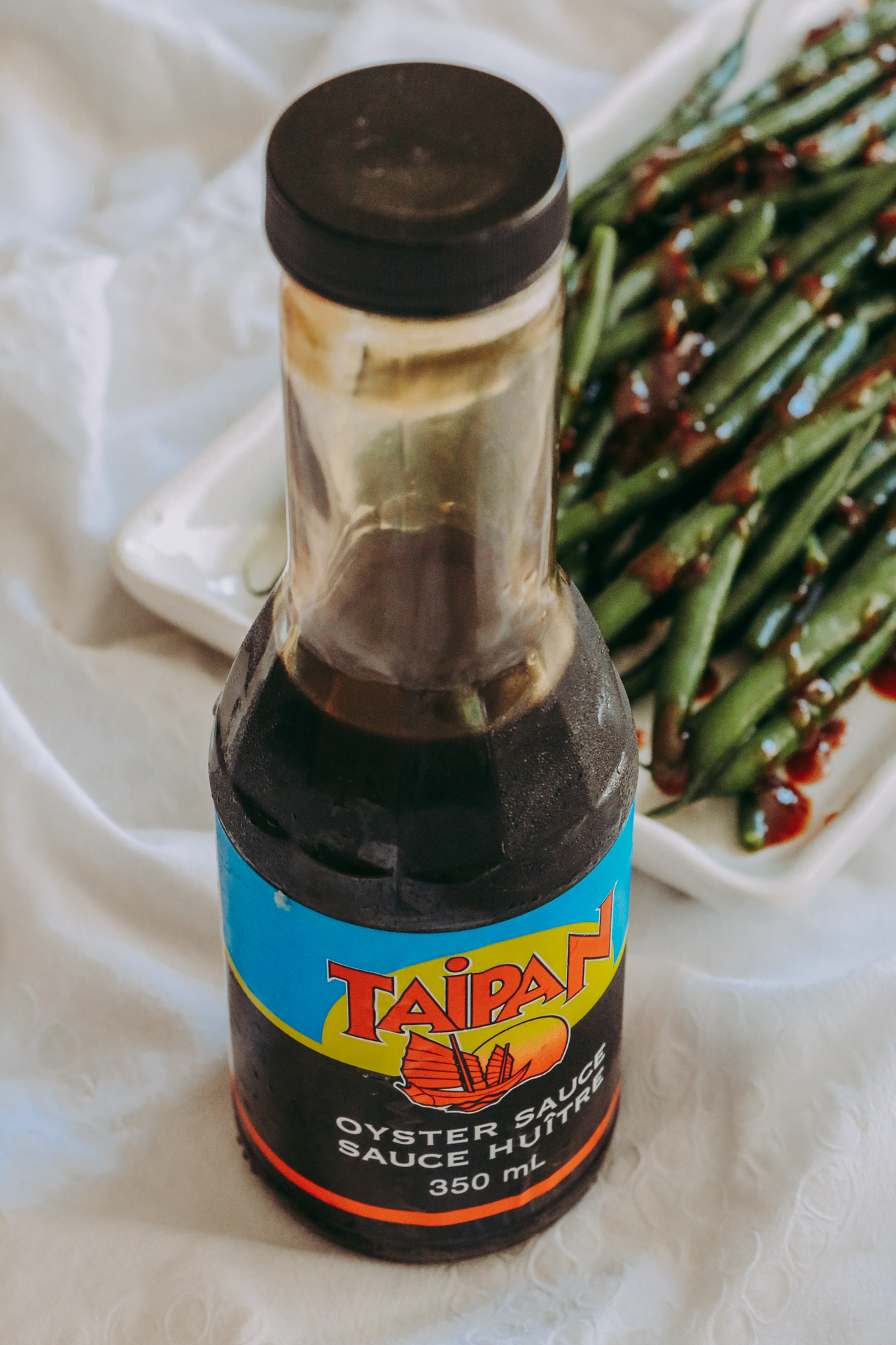 Mix all ingredients. These measurements are general guidelines. You can adjust the amount according to how many beans you’re preparing. The important thing is 2 parts olive oil, 1 part hoisin sauce, and 1 part oyster sauce. The chili paste and garlic are to taste.
